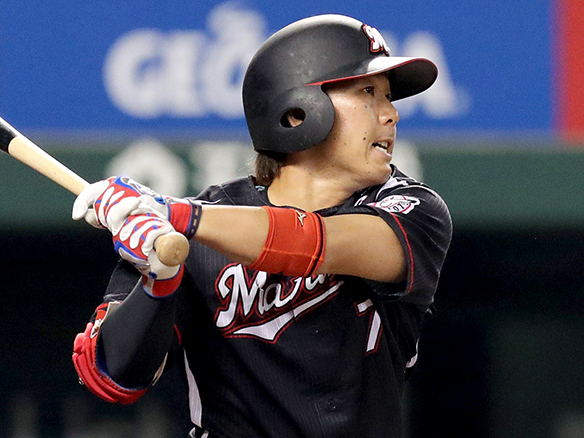 4番 角中 中2 外角のシュートをセンターへ打ってツーベース 2塁 |