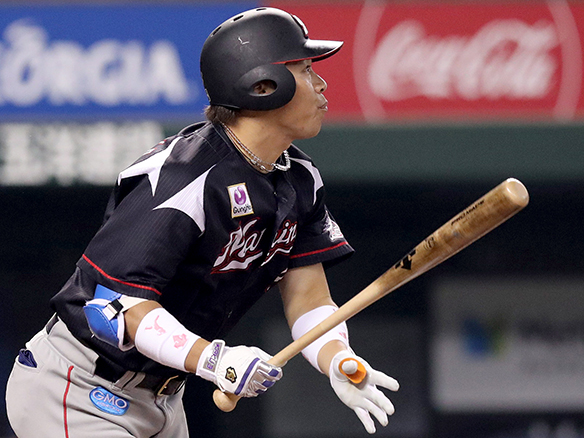 投手 十亀 9番 吉田 左2 外角のスライダーをレフトへ打ってツーベース 2塁 |