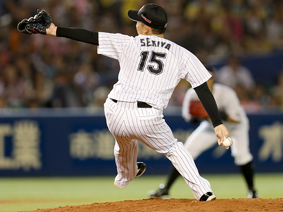 投手 関谷 9番 石井一 右2 内角のストレートをライトへ打ってツーベース 2塁 |