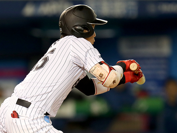 加藤が積極的な初球攻撃で安打を放ち出塁する