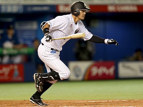 9番 石井一 中安 外角のシュートをセンターへ打ってヒット 1塁 |