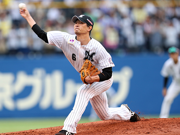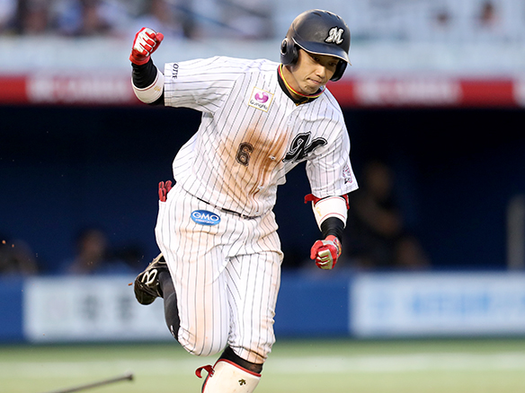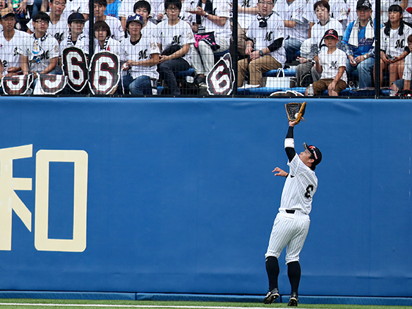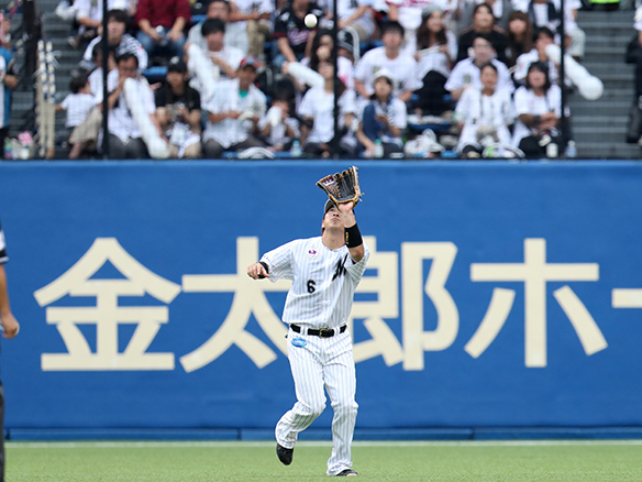 9番 石井一 空三振 低めのフォークを空振り三振 3アウトチェンジ |
