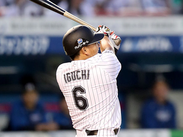 井口は三振に倒れたが、そのフルスイングに観客がわいた