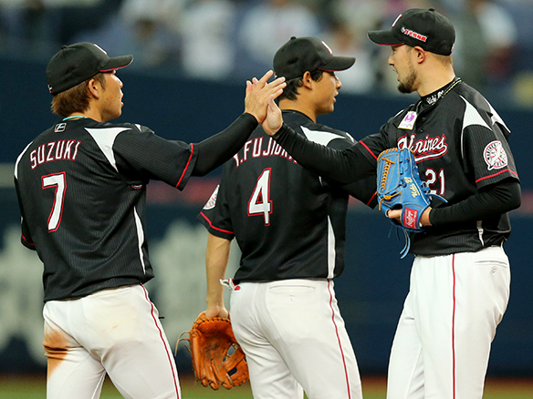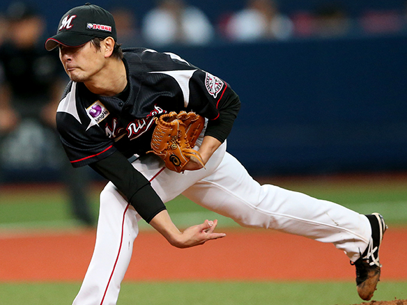 投手 涌井 4番 ロメロ 死球 デッドボールを受ける 1塁  |