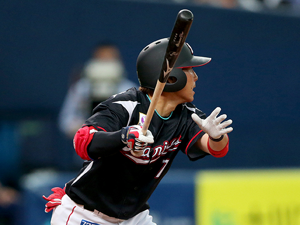 1番 宗 左安 ランナー1塁 外角低めのフォークをレフトへ打ってヒット 1,2塁  |