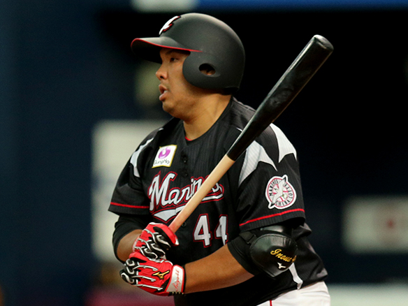 投手 ディクソン 7番 福浦 左安 外角低めのストレートをレフトへ打ってヒット 1塁  |