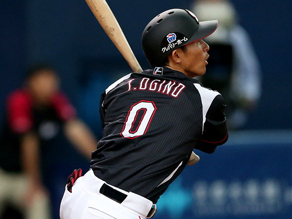 1番 荻野貴 左安 ランナー1塁 内角低めのストレートをレフトへ打ってヒット 1,2塁  |