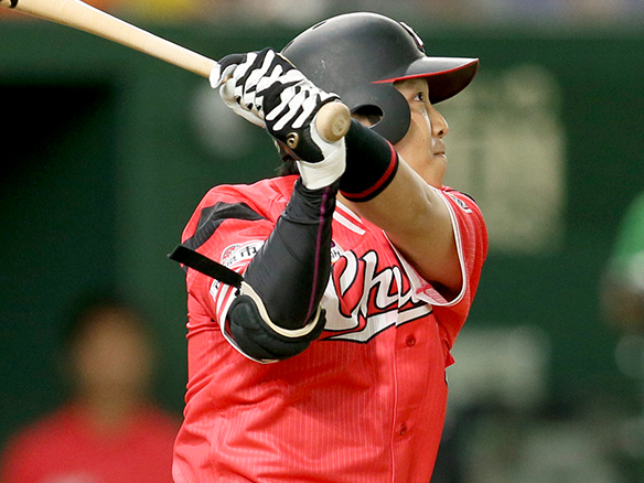 8番 清田 左本 カウント1-0からレフトスタンドへホームラン! 日6-4ロ ![]() 6