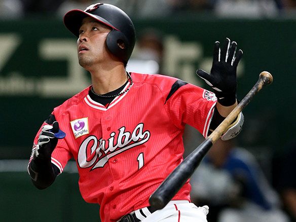 9番 中島卓也 左安 高めのストレートをレフトへ打ってヒット 1塁  |