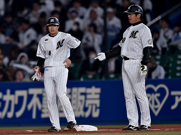 投手 カスティーヨ 1番 荻野貴 四球 フォアボールを選ぶ 1塁  |