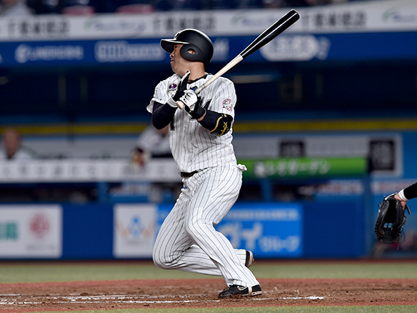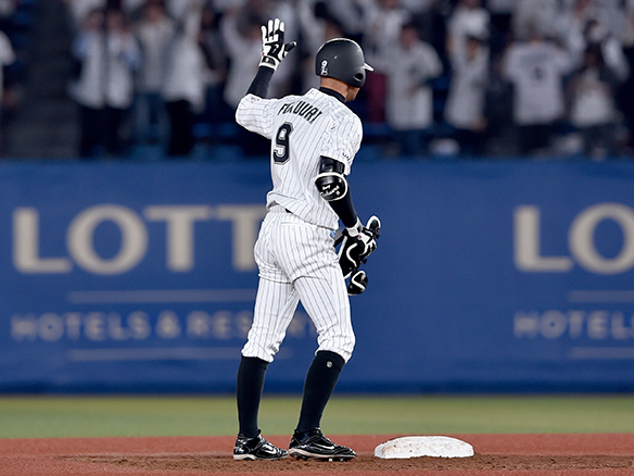 4番 山川 左2 外角高めのカーブをレフトへ打ってツーベース 2塁  |