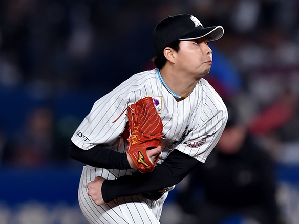 投手 二木 9番 金子侑 中飛 低めのスライダーを打つもセンターフライ 1アウト  |