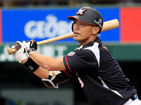 4番 井上 左安 ランナー1塁 外角のフォークをレフトへ打ってヒット 1,2塁  |