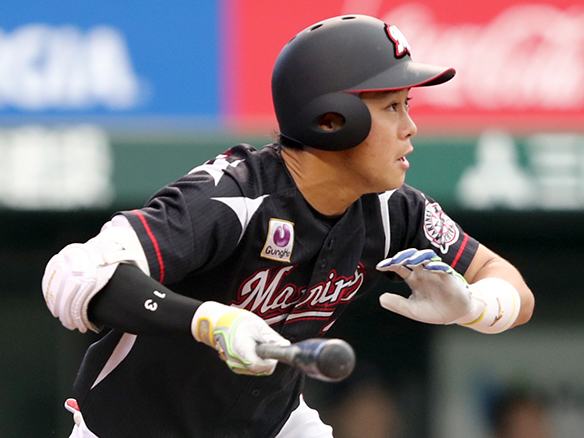 3番 中村 中安 外角低めのスライダーをセンターへ打ってヒット 1塁  |