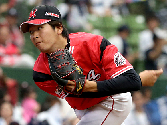 投手 益田 7番 栗山 遊ゴロ 高めのストレートを打つもショートゴロ 1アウト  |