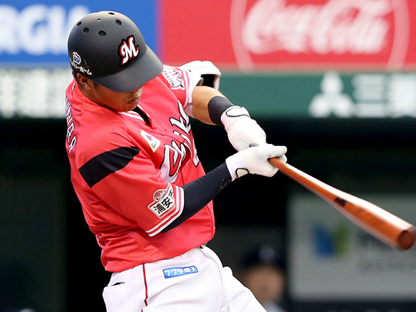 7番 福浦 右安 ランナー2塁 内角のストレートをライトへ打ってヒット 1,3塁  |