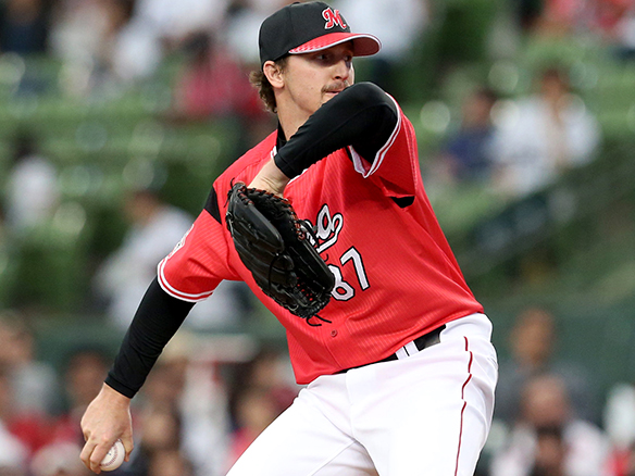 1番 荻野貴 中飛 高めのカットボールを打つもセンターフライ 2アウト  |