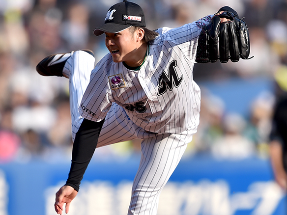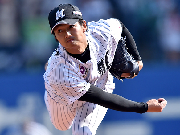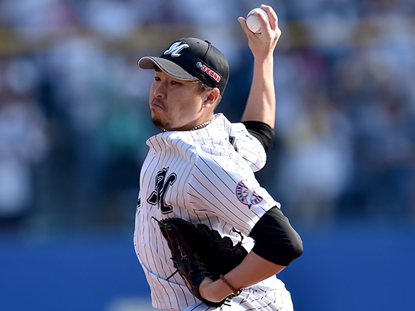 投手 有原 7番 福浦 空三振 外角高めのストレートを空振り三振 1アウト  |