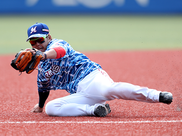 鋭い当たりを好守で三ゴロに仕留めた鈴木