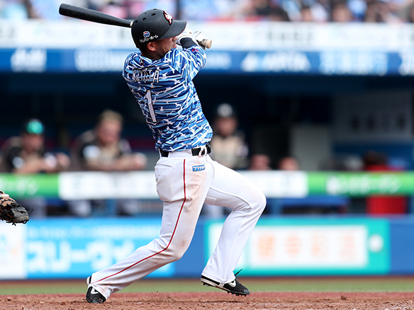 鈴木の打球は1、2塁間を抜け3試合振りの安打を記録