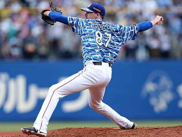 投手 ロドリゲス 1番 荻野貴 三ゴロ 内角高めのツーシームを打つもサードゴロ 1アウト  |