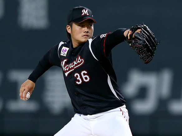 投手 有原 6番 鈴木 空三振 内角低めのチェンジアップを空振り三振 1アウト |