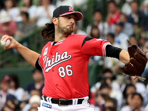 投手 ボルシンガー 3番 浅村 空三振 外角低めのスライダーを空振り三振 1アウト |