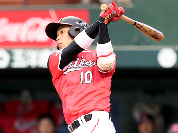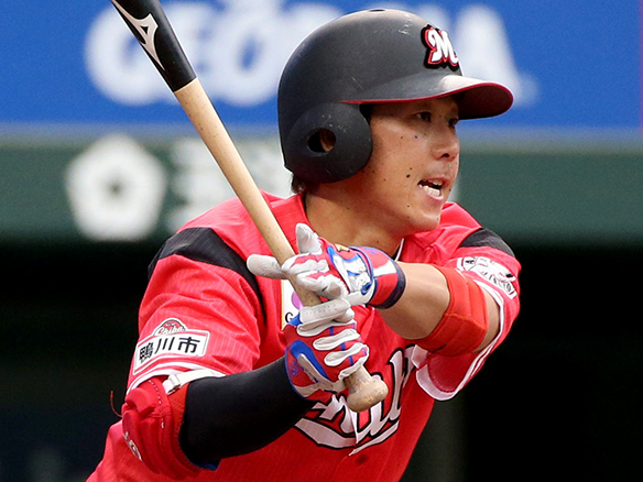 1番 秋山 右安 内角高めのカットボールをライトへ打ってヒット 1塁 |