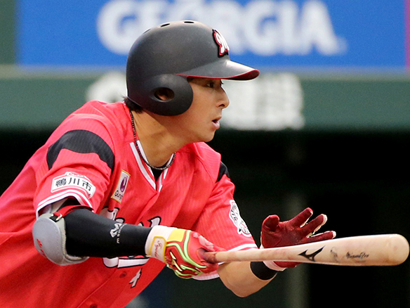 1番 秋山 右安 低めのシンカーをライトへ打ってヒット 1塁 |