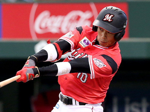 4番 角中 空三振 外角高めのフォークを空振り三振 |