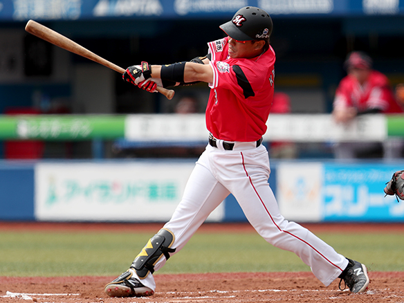 2番 藤岡裕 遊安 ど真ん中のストレートをショートへ打ってヒット 1塁 |