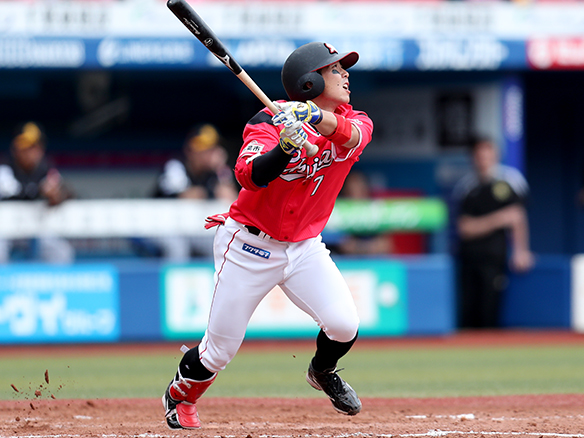 3番 柳田 四球 フォアボールを選ぶ 満塁 |