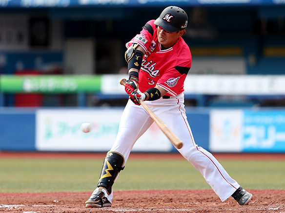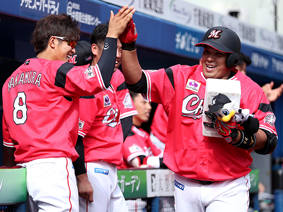 角中の2打席連続適時打で中村が還り6点目を挙げる
