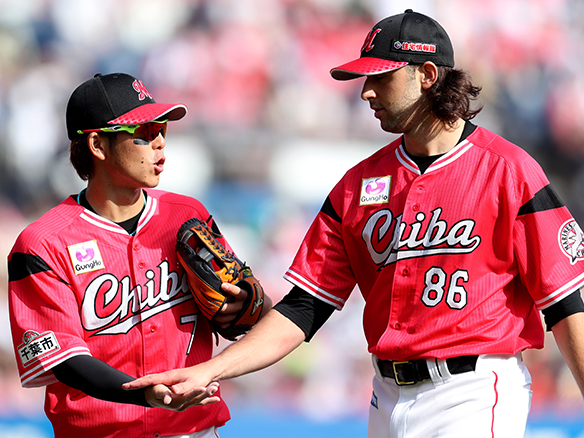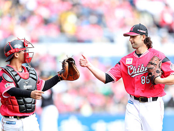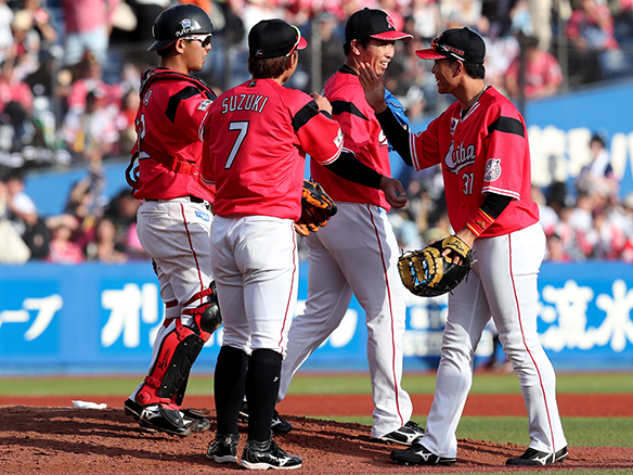 9回は益田が3者凡退で締め、ナインとタッチを交わした