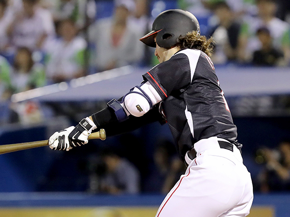 4番 バレンティン 二ゴロ ランナー1塁 外角低めのカットボールを打つもセカンドゴロ 2塁 2アウト |