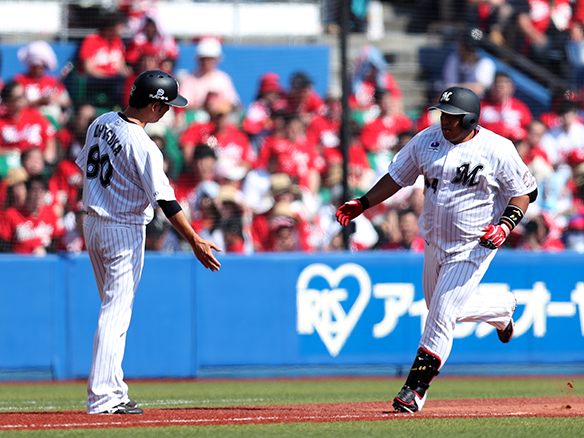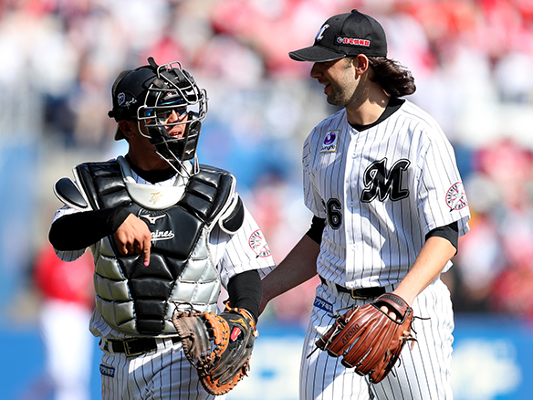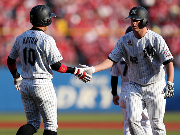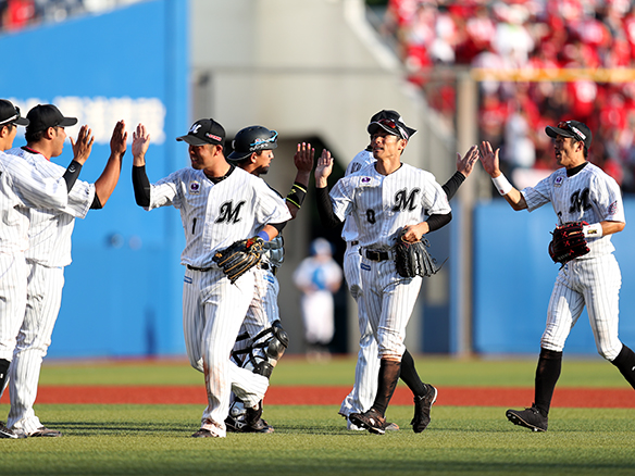 満員のZOZOマリンで勝利を喜ぶナイン