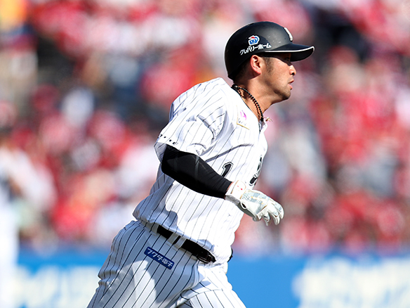 4番 角中 左安 ランナー1,2塁 外角のストレートをレフトへ先制タイムリーヒット! 1,2塁 ロ1-0広 ![]() 1