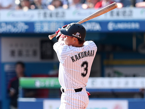 3番 中村 中安 外角高めのカットボールをセンターへ打ってヒット 1塁 |