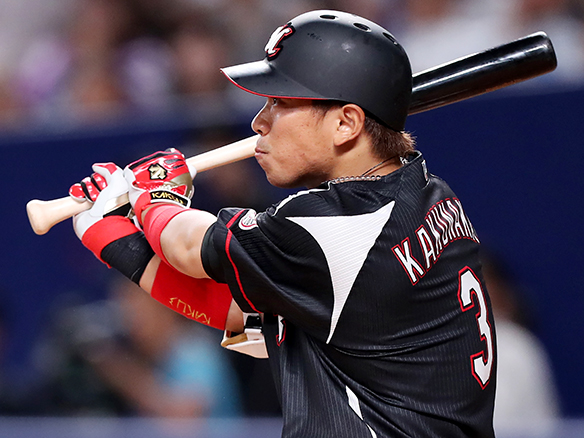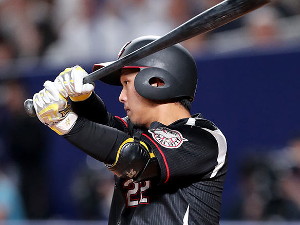 2打席連続の2塁打を放ち、4打点目を挙げた角中