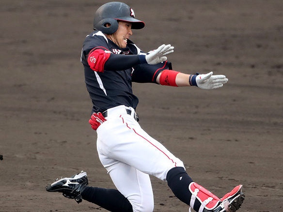 右前打を放った鈴木は果敢に2塁へ滑り込む