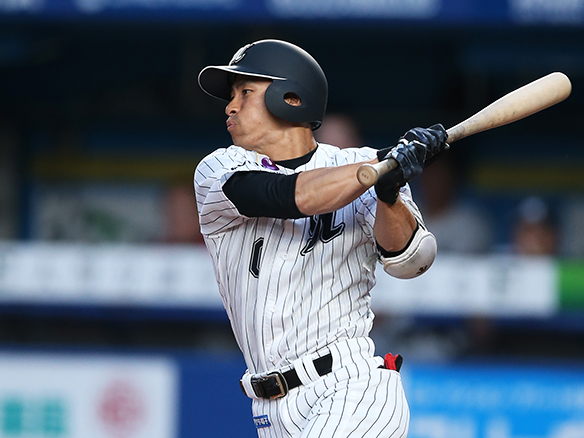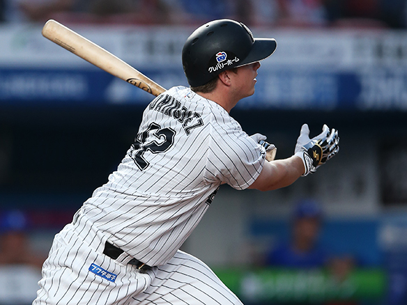 投手 バリオス 1番 荻野貴 左安 外角のツーシームをレフトへ打ってヒット 1塁 |