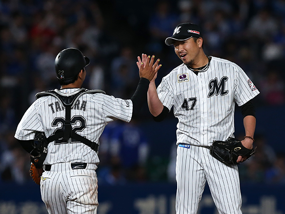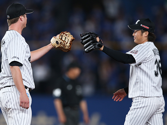 投手 益田 投手 田中 守備変更:平沢→ファースト 守備変更:田中→ピッチャー |