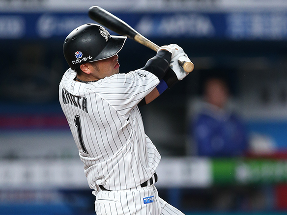 1番 荻野貴 左飛 ランナー1塁 高めのフォークを打つもレフトフライ 2アウト |