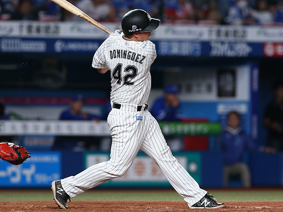 7番 ドミンゲス 左安 外角のカーブをレフトへ打ってヒット 1塁 |