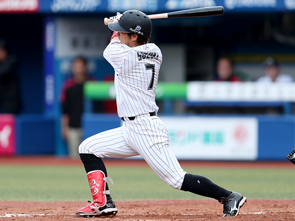 欲しい追加点へ向けて右前打で出塁した鈴木
