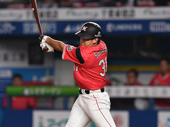 中村の安打で好機をさらに広げる
