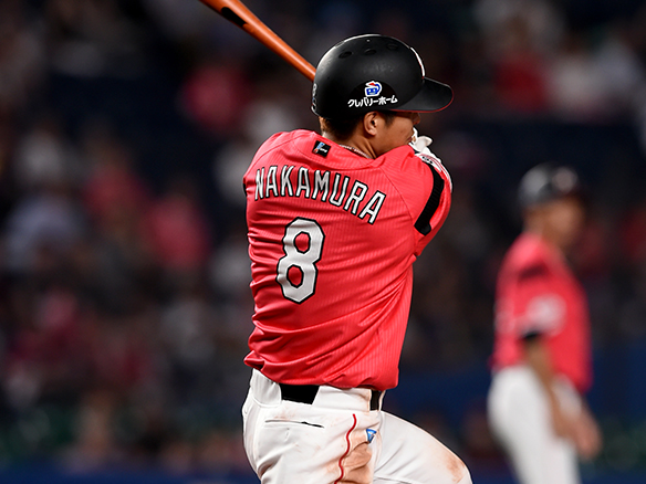 3番 中村 中安 ランナー1,2塁 外角低めのストレートをセンターへ打ってヒット 満塁 |