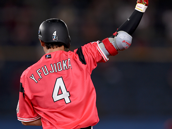 2番 藤岡裕 左安 外角高めのストレートをレフトへ打ってヒット 1塁 |