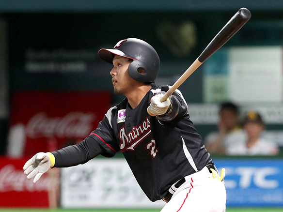 4番 角中 中安 ど真ん中のストレートをセンターへ打ってヒット 1塁 |