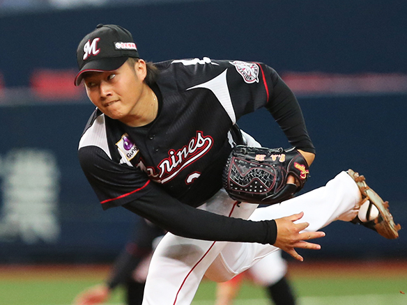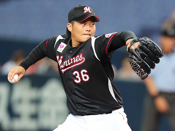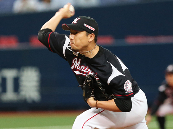 投手 金子千尋 7番 福浦 空三振 外角のスライダーを空振り三振 1アウト |